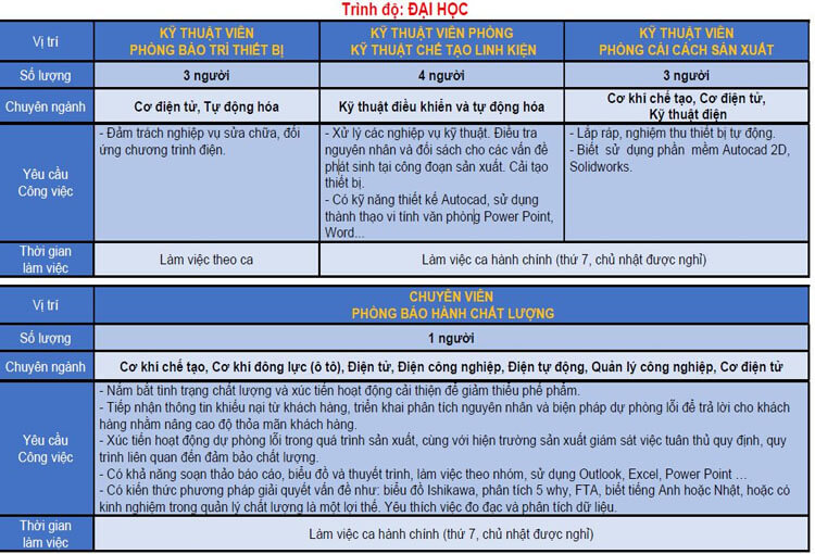 Sự đa dạng trong nhu cầu tuyển dụng giúp Mabuchi tiếp cận được nhiều đối tượng lao động khác nhau.
